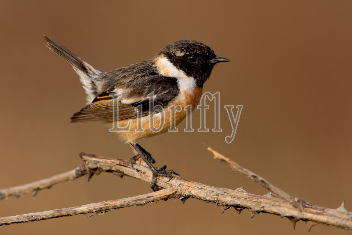 Male European Stonechat, Saxicola rubicola, Italy