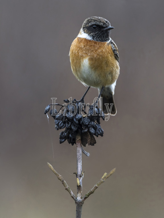 Male European Stonechat, Saxicola rubicola, Italy