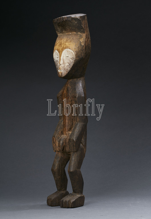 male figure for Lilwa Association, Mbole people, 20th century, wood, pigment, 17-1/4 x 3-3/4 x 3-1/4 in., African Art
