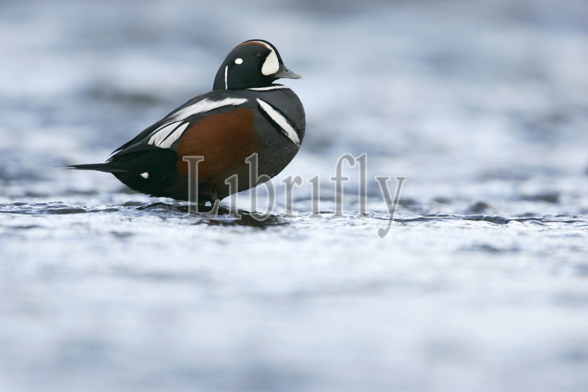 Male Harlequin Duck in Icelandic river, Histrionicus histrionicus