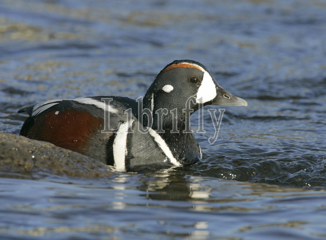 Male, Harlequin Duck, swimming, Icelandic stream, Histrionicus histrionicus, nature, bird, animal, wildlife, wild, fauna, natural, feather, sky, beak, wing, outdoor, freedom, colourful, Liszt, Natural History, ornithology, vertebrate animals, photography, color image