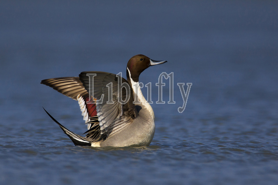 Male Northern Pintail flapping wings, Anas acuta, Italy