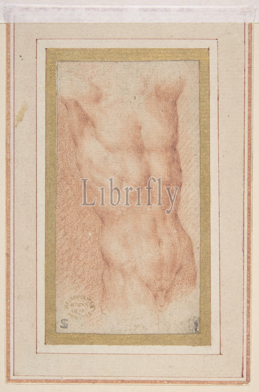 Male Nude Torso with Raised Arms, ca. 1522–24, Red chalk, 4 1/8 x 2 3/16in. (10.4 x 5.5cm), Drawings, Parmigianino (Girolamo Francesco Maria Mazzola) (Italian, Parma 1503–1540 Casalmaggiore), Popham considered this small, delicately executed study a pre-Roman drawing by the artist, copied probably from an antique statue of the Flaying of Marsyas. However, the pose of the shoulders and armpit here does not seem to correspond to the tight compression of the shoulders and disjointed raising of the arms, with wrists bound above the head, that is typical of Marsyas figures