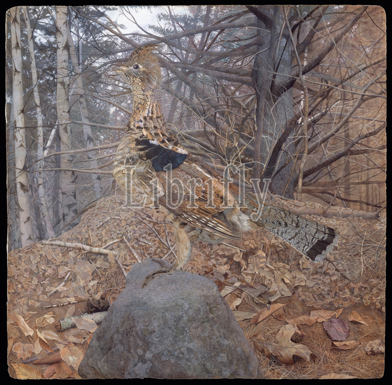 Male Ruffed Grouse, Forest, 1907–8, Watercolor, paper, 19 3/4 x 20, 50.2 50.8 cm, Drawings, Gerald Thayer, American, 1883–1939