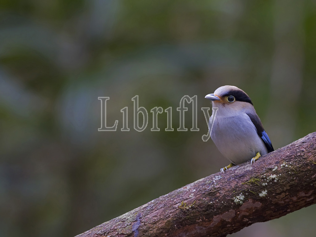 Male Silver-breasted Broadbill perched on a branch, Serilophus lunatus