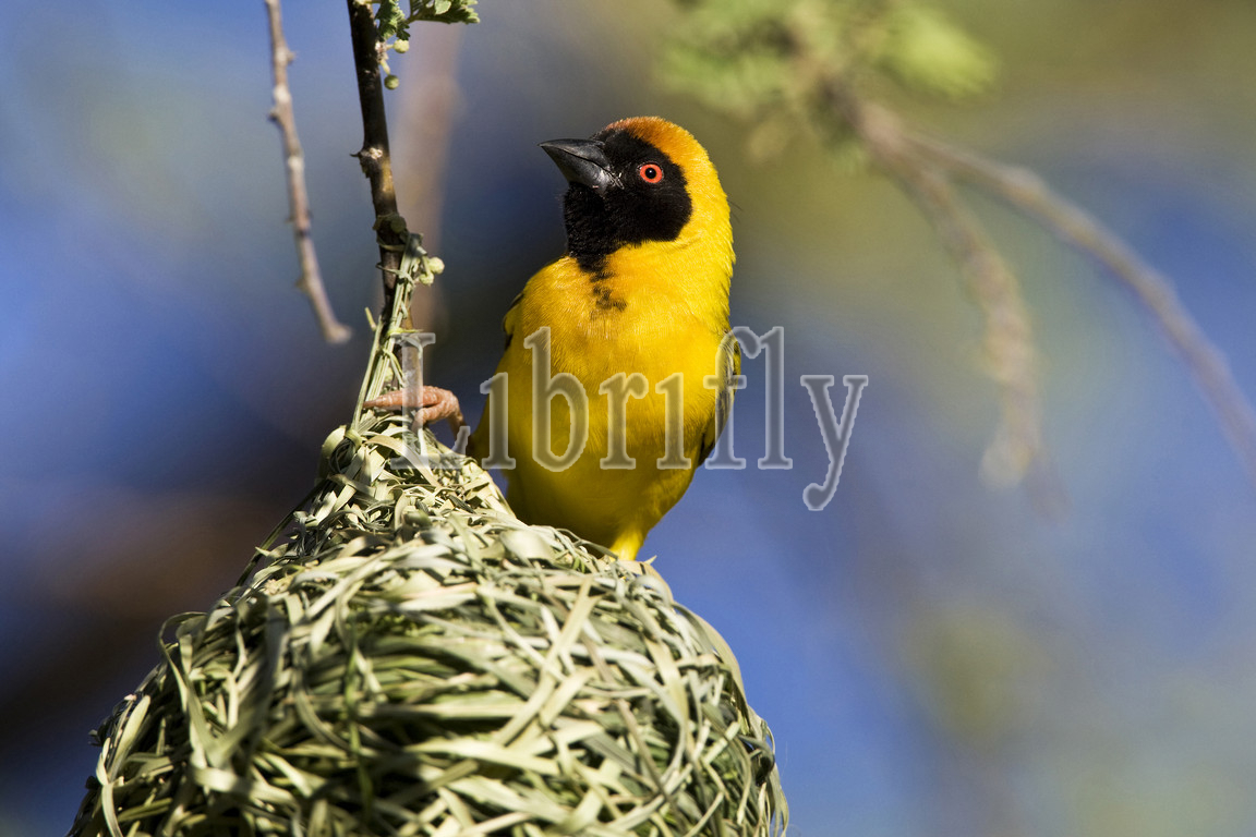 Male Southern Masked-Weaver at nest Namibia