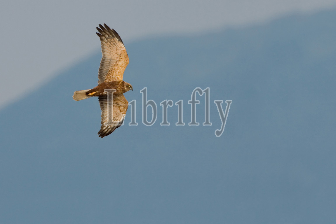 Male Western Marsh Harrier in flight, Circus aeruginosus, Italy