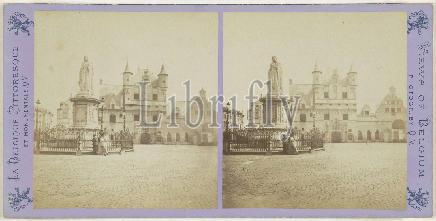 Malines, La Halle and the statue of Marguerite d'Autriche, aunt de Charles-Quint and fille de l'empereur Maximilian, (par Tuerlinck), Jules Queval, 1860 - 1880