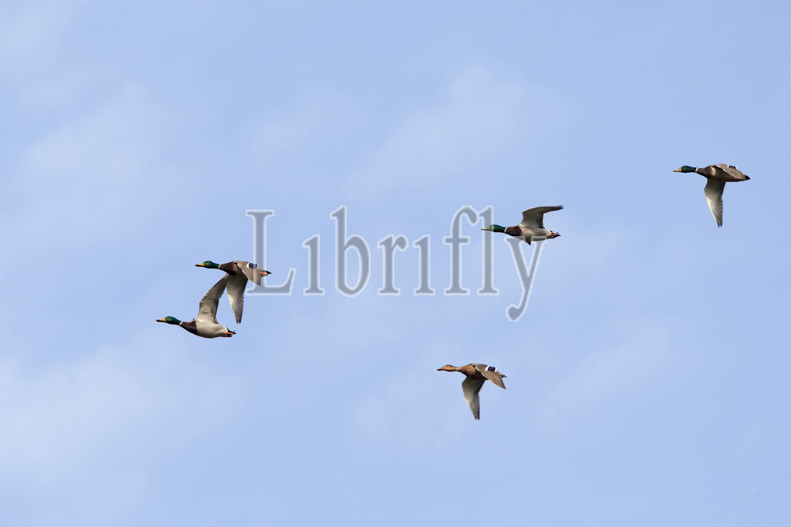 Mallards in flight, Anas platyrhynchos