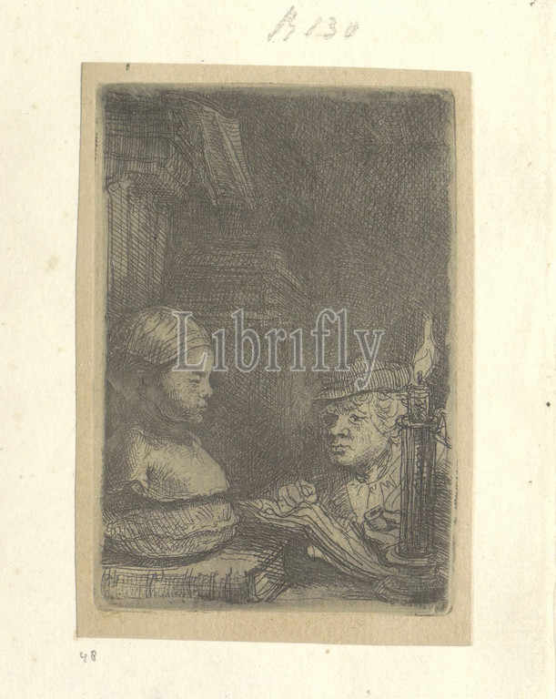 Man, drawing, plaster model, Recueil de quatre-vingt-cinq estampes originales, series title, print, part, album, print maker, Rembrandt van Rijn, publisher, Henry Louis Basan, Paris, 1639, 1643, 1807, 1808, paper, etching, height 94 mm, width 64 mm