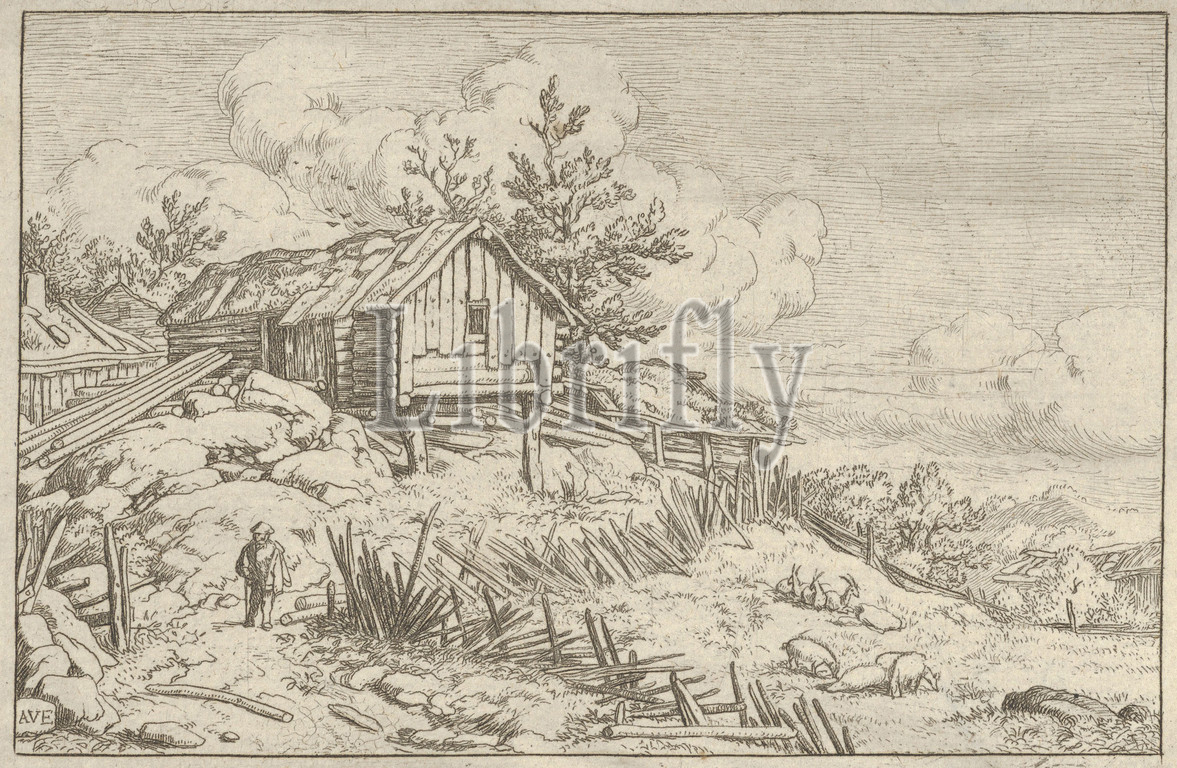 Man, Entry, Ruinous Hedge, 17th century, Engraving, second state, two, Plate, 3 11/16, 5 9/16, 9.4, 14.2 cm, Prints, Allart van Everdingen, Dutch, Alkmaar, 1621–1675, Amsterdam