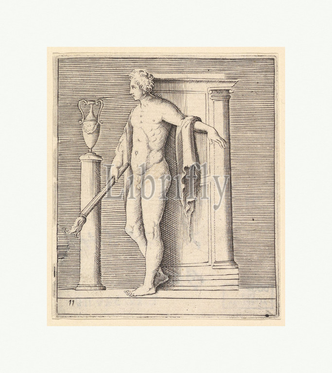 Man with Torch at Temple Door, published ca. 1599–1622, Engraving. Third state., plate: 3 7/16 x 4 7/8 in. (8.8 x 12.4 cm), Prints, Engraved by Anonymous, Italian, 16th century, After Battista Franco (Italian, Venice ca. 1510–1561 Venice)