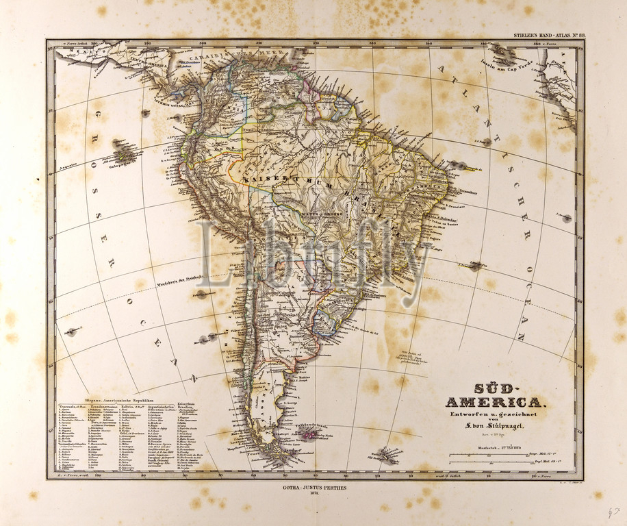 Map South America, Sud America, Gotha, Justus Perthes, 1872, Atlas, Book of Maps, Map, Thuringia, Erfurt, Germany, Deutschland, Bundesrepublik Deutschland, BRD, Allemagne, d’Allemagne, republica federal de Alemania, arkheia