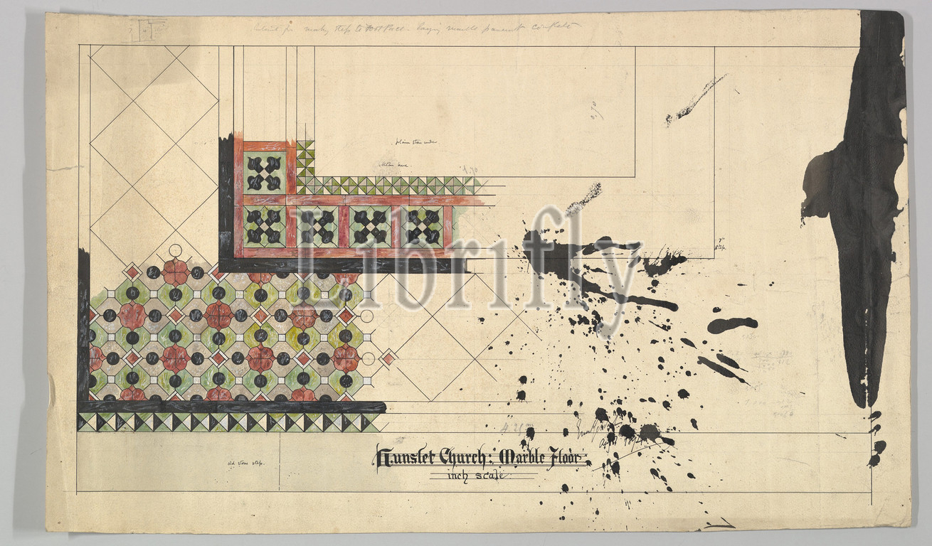 Marble Floor Design, Hunslet Church, 1894, Pen, ink, graphite, watercolor, sheet, 13 x 21 1/2, 33 54.6 cm, Ernest Geldart, British, London, 1848–1929