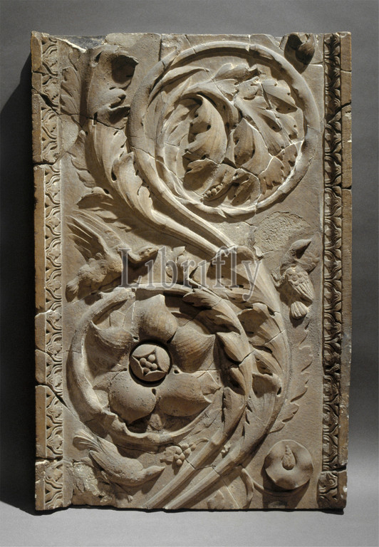Marble pilaster, acanthus scrolls, Early Imperial, Julio-Claudian, 1st half, century .D, Roman, Marble, Overall, 138 x 28in, 350.5 71.1cm, Stone Sculpture, acanthus, scroll, decorates, pilaster, presumably, public building, populated, variety, birds, imagery, major imperial, monuments, Rome, notably, Ara Pacis, Augustae, well, funerary altars, minor works, art, silver drinking, bowls, Arretine pottery