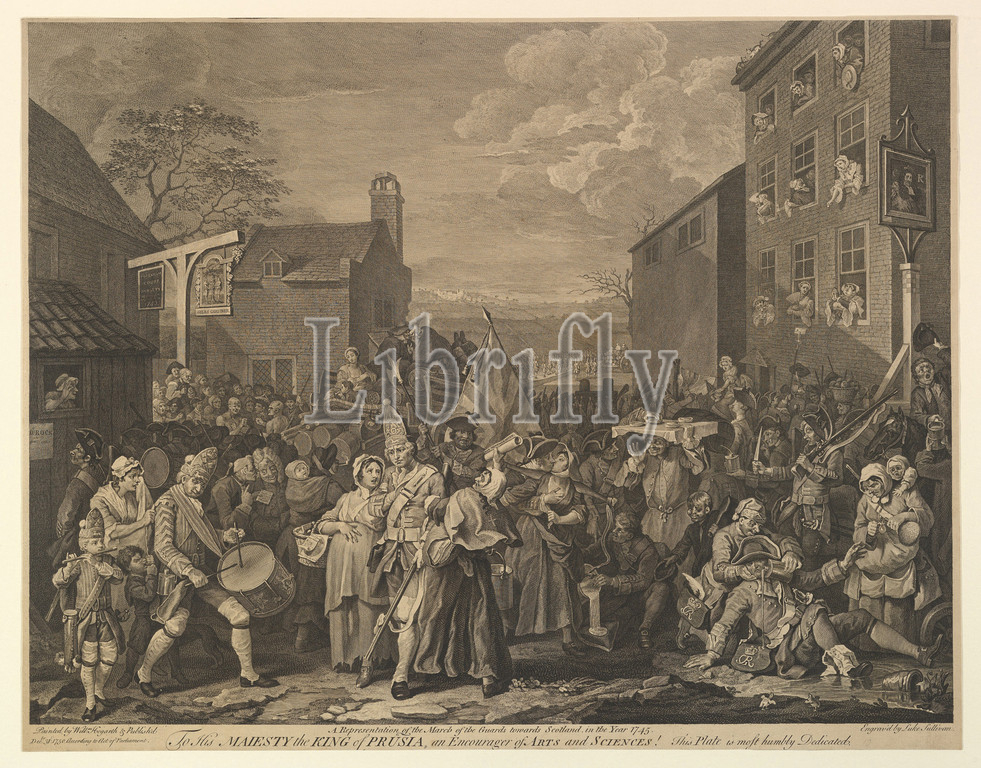 March, Finchley, Representation, Guards towards Scotland, Year 1745, December 31, 1750, Etching, engraving, fifth state, eight, Sheet, 17 x 21 15/16, 43.2 55.8 cm, Prints, after William Hogarth, British, London, 1697–1764