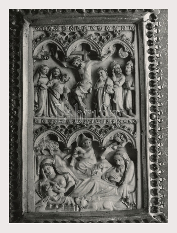 Marches Ancona Sassoferrato Pinacoteca, this is my Italy, the italian country of visual history, Two coats-of-arms of Sassoferrato and the Bishop Aldobrandini a polyptych of saints Anthony, Sebastian, Roch and Martin the Madonna of Sassoferrato a portrait of Sentinensi ceramic fragments 15th-16th centuries a renaissance ciborium, a mosaic of St. Demetrius in a wood and silver frame 10th-11th centuries an Umbrian processional cross 15th century a wooden statue of the Madonna di Loreto reliquaries a saint's wooden shoe an ivory diptych silver medallions 13th century and various paintings. Antiquities A Roman altar, gravestone, urn and torso. 1st-3rd centuries. Photo 1983
