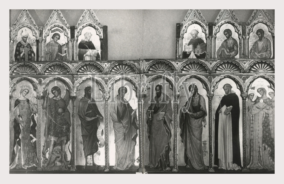 Marches Macerata San Severino Marche Pinacoteca Civica, this is my Italy, the italian country of visual history, The collections include a silver reliquary 1326, a relic of Pope Peter Celestini V, a silver plate, a 13th-century clothes chest illustrating a medieval legend, a globe with constellations/signs of the zodiac, fresco fragments by the Salimbeni brothers, a fresco of St. Francis receiving the Stigmata from the church of S. Francesco in Castello now destroyed, a fresco of St. Anthony Abbot, elaborate polyptychs by Veneziano and Salimbeni, an ivory chest with secular imagery, and various altarpieces and paintings. Of exceptional quality are paintings by Bernardino Mariotto of the Annunciation and the Pieta, and an altarpiece of the Madonna and Child Enthroned with Saints by Vittore Crivelli.