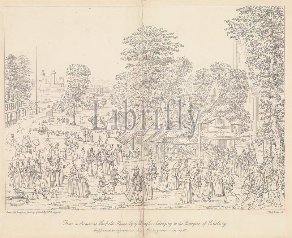 Marriage Fete, Bermondsey, 1590, John Le Keux, 1783–1846, British, drawing, Charles Grignion, 1717–1810, British, Joris Hoefnagel, 1542–1600, Flemish, Photo-reproduction, smooth, medium, cream wove paper, Sheet