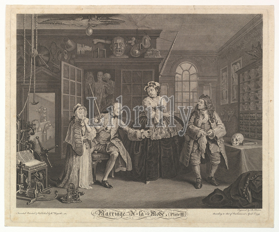 Marriage -la-Mode, Plate III, April 1745, Etching, engraving, second state, three, Plate, 15 3/8 x 18 1/2, 39 47 cm, Prints, After William Hogarth, British, London, 1697–1764