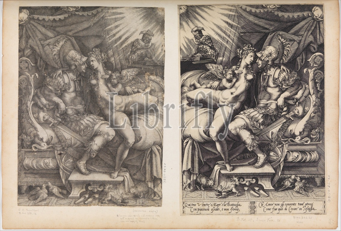Mars, Venus, Engraving, Prints, Engraved by Giovanni Battista Scultori, Italian, 1503–1575, Mariette, Album, folio 66, bottom