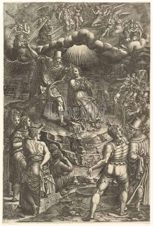 Martrydom, St, Barbara, late 1570s, Engraving, sheet, 10 1/2 x 7 1/16, 26.7 18 cm, borderline, Prints, Engraved by Giorgio Ghisi, Italian, Mantua ca., 1520–1582, Mantua