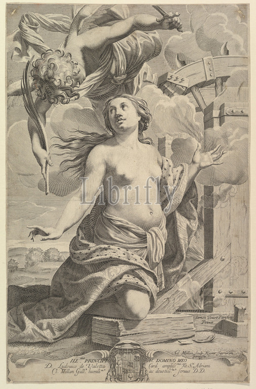 Martyrdom, St, Catherine, 1625, Engraving, sheet, 17 1/2 x 11 1/4, 44.5 28.5 cm, Prints, Claude Mellan, French, Abbeville, 1598–1688, Paris, After Simon Vouet, 1590–1649