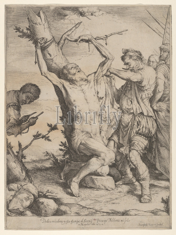 The Martyrdom of Saint Bartholomew, 1624, Etching and engraving, Sheet: 12 11/16 × 9 7/16 in. (32.2 × 24 cm), Prints, Jusepe de Ribera (called Lo Spagnoletto) (Spanish, Játiva 1591–1652 Naples)