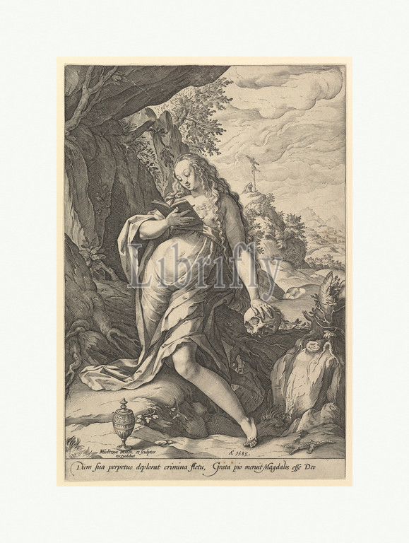 St, Mary Magdalen Penitent, 1585, Engraving, first state, two, sheet, 11 1/2 x 7 13/16, 29.2 19.9 cm, Prints, Hendrick Goltzius, Netherlandish, Mühlbracht, 1558–1617, Haarlem