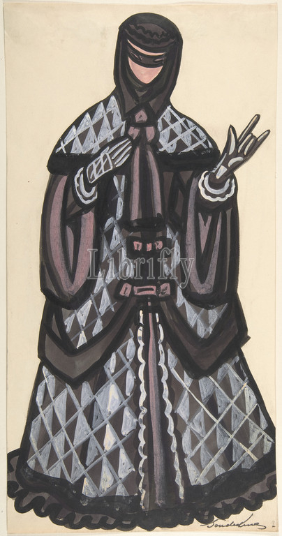 Masked Woman, first half 20th century, brush and black ink, gouache, watercolor, traces of graphite framing lines, sheet: 16 15/16 x 8 11/16 in. (43.1 x 22 cm), Drawings, Sergey Sudeykin (Russian, Smolensk 1882–1946 Nyack)
