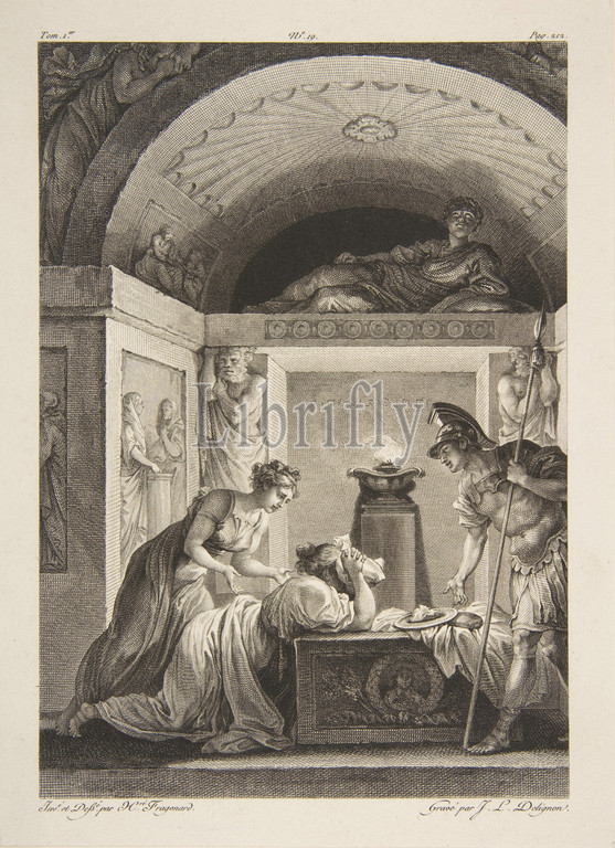 La Matrone d'Ephese, from Contes et nouvelles en vers par Jean de La Fontaine. A Paris, de l'imprimerie de P. Didot, l'an III de la République, 1795, published in 1795, Etching and engraving; third state of three (Cohen), Sheet: 8 11/16 × 6 7/16 in. (22.1 × 16.4 cm), Prints, Jean-Louis Delignon (French), After Jean Honoré Fragonard (French, Grasse 1732–1806 Paris)