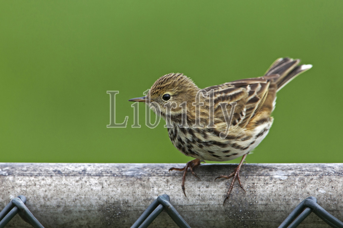 Meadow Pipit perched on fence, Anthus pratensis, Netherlands