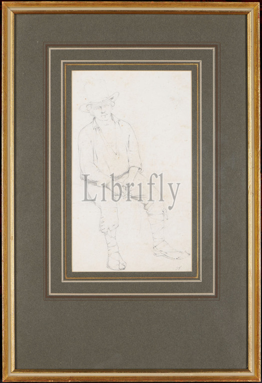 Men, Italian Peasant Costume, .1838-1912 Edward Richard Taylor, d.1912, 19th Century, 20th Century, Costume, Drawing, Pencil, Frame, Male, Costume, Hat, Full-length, Seated, Works, Paper