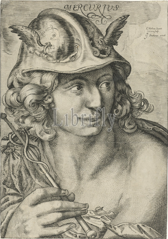 Mercury Mercvrivs, title, object, god Mercury, bust, right, caduceus, hand, story, Mercury, Hermes, Gerrit Gauw, mentioned, Amsterdam, 1604, 1634, paper, engraving, w 314 mm × h 4446 mm