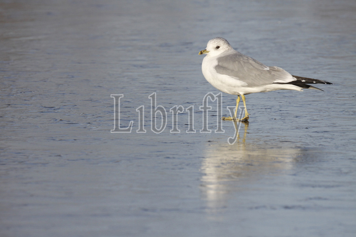Mew Gull perched in water, Larus canus