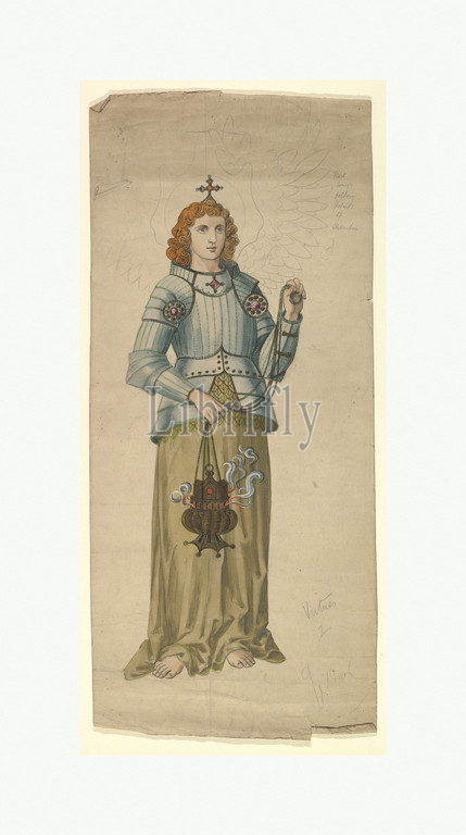 St. Michael (?) with a Censer, late 19th–early 20th century, Graphite, pen and ink and watercolor, sheet: 25 x 11 1/2 in. (63.5 x 29.2 cm), Drawings, Ernest Geldart (British, London 1848–1929)