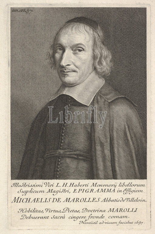 Michel de Marolles, 1657, Engraving, first state, three, Petitjean & Wickert, Sheet, 7 3/16, 4 15/16, 18.2, 12.5 cm, Prints, Robert Nanteuil, French, Reims, 1623–1678, Paris