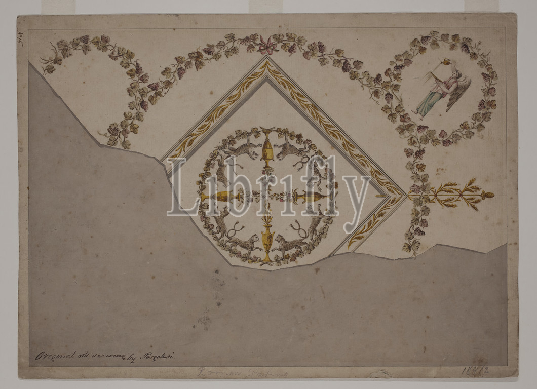 Michelangelo Pergolesi, Italian, 1740-1801, Design, Ceiling, Bacchic Motifs, Leopards, Vine Scrolls, ca. 1770, brush, watercolor, preliminary drawing, graphite, double thickness, buff laid paper, Sheet, 10 3/8