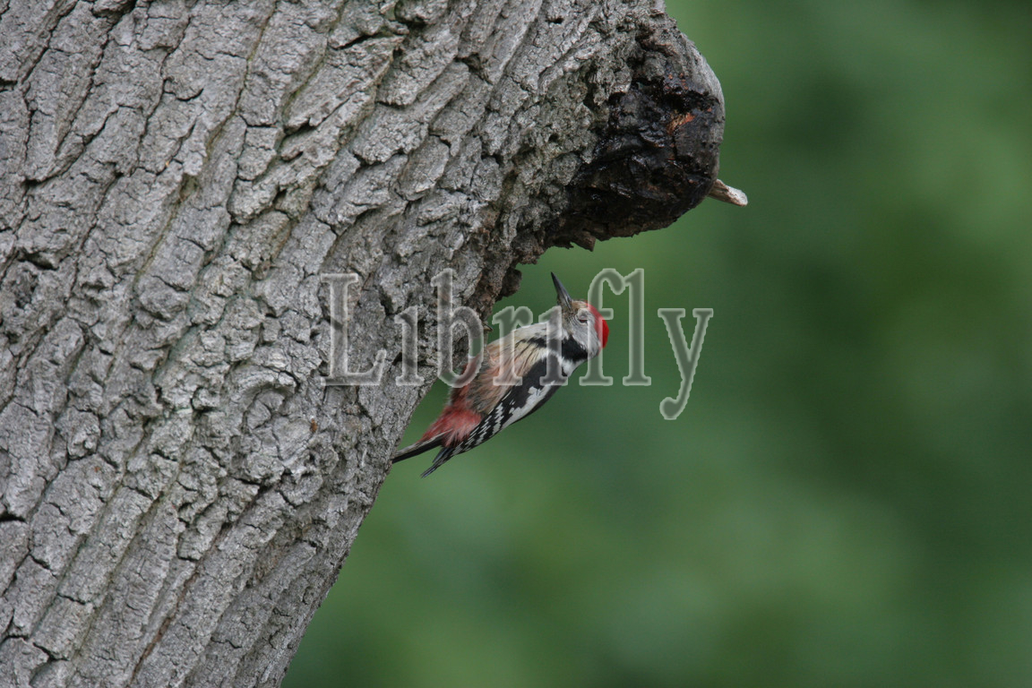 Middle Spotted Woodpecker, foraging, tree, Dendrocoptes medius, nature, bird, animal, wildlife, wild, fauna, natural, feather, sky, beak, wing, outdoor, freedom, colourful, Liszt, Natural History, ornithology, vertebrate animals, photography, color image