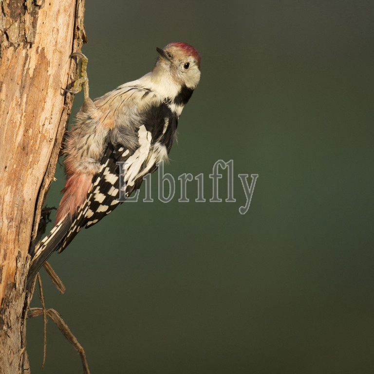 Middle Spotted Woodpecker on tree trunk, Dendrocoptes medius, The Netherlands