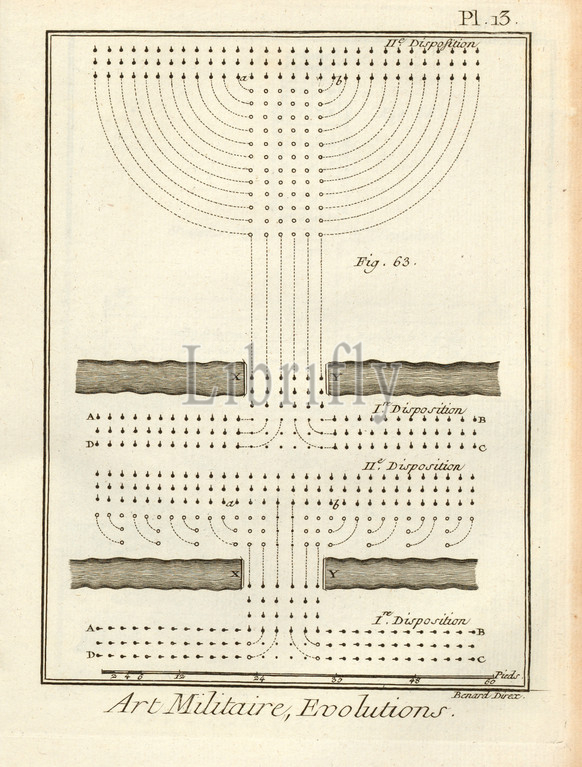 Military Art, Evolutions 5, Maneuver, Signed, Benard Direx, Pl. 13, p. 14, Benard, dir., 1778, Denis Diderot, M, d'Alembert, Encyclopédie, dictionnaire raisonné des sciences, des arts, des métierss, des métiers, Genève, chez Pellet, MDCCLXXVIII 1778