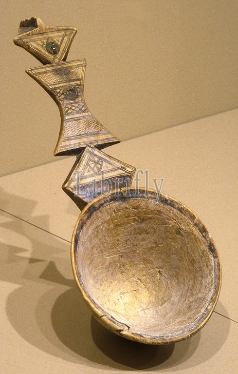 milk ladle, tamulat, 1901-1997, wood, pigment, 13-3/4 x 5-1/16 x 4, African Art
