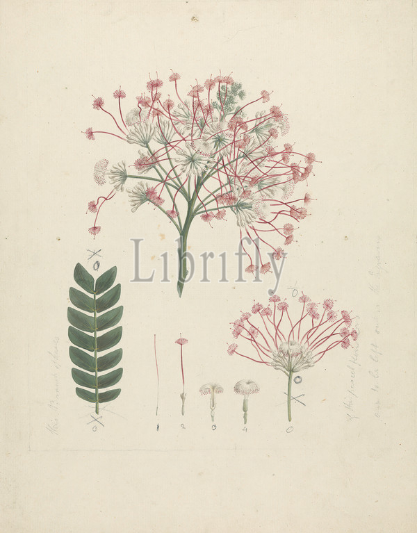 Mimosa pigra, L., finished drawing, Luigi Balugani, 1737–1770, Italian, Formerly James Bruce, 1730–1794, British, Watercolor, gouache, graphite, medium, slightly textured, cream laid paper, Sheet