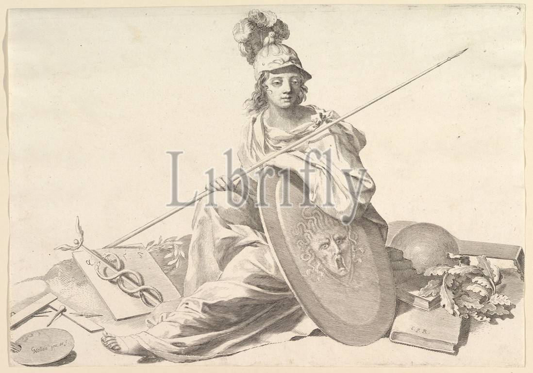 Minerva, Engraving, first state, two, sheet, 9 7/16 x 13 9/16, 24 34.5 cm, Prints, Claude Mellan, French, Abbeville, 1598–1688, Paris