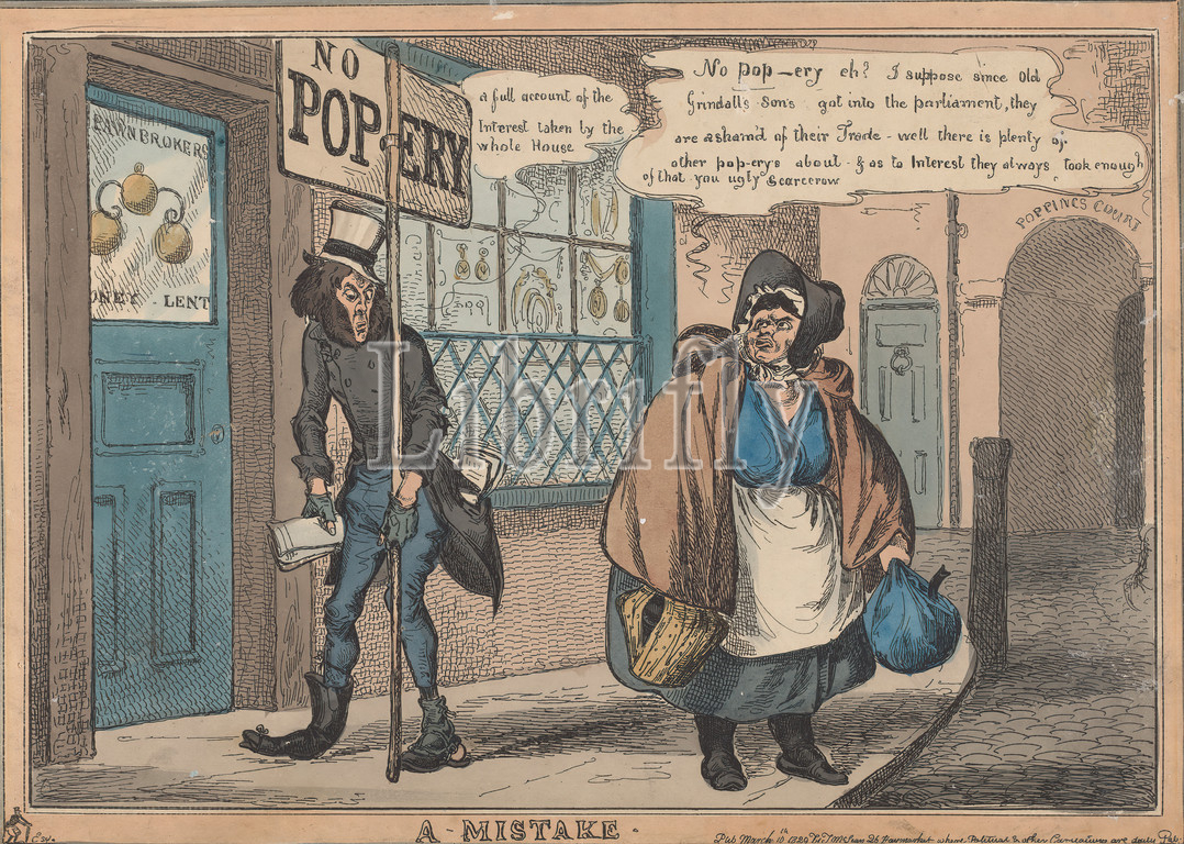 Mistake, Print, William Heath, 1795–1840, British, Published, Thomas McLean, 1788–1875, British, 1829, Etching, hand coloring, watercolor, medium, slightly textured, cream wove paper, Mount, Sheet, Image