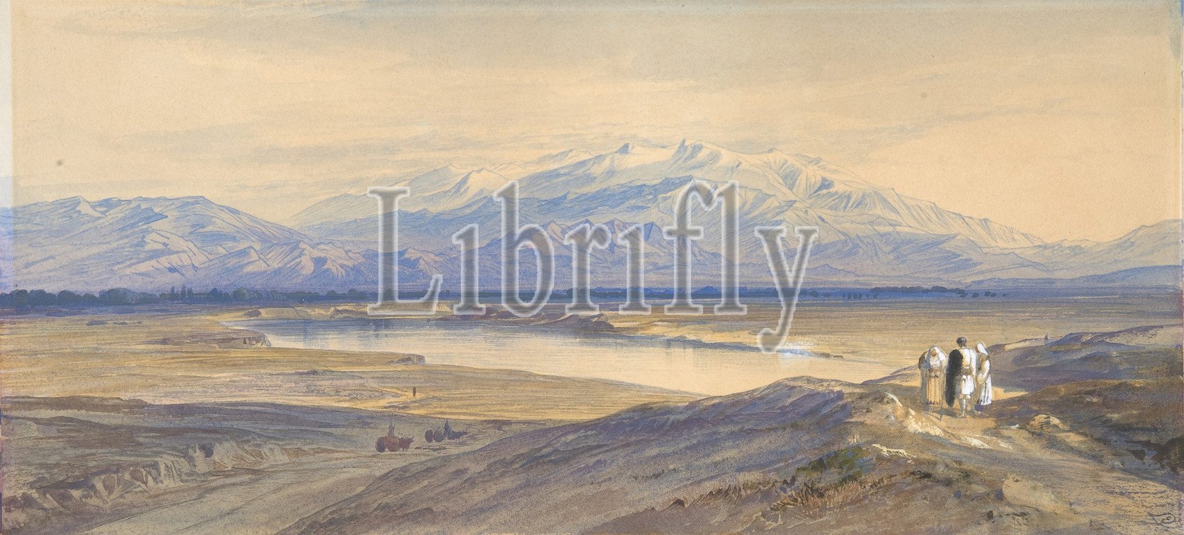 Mount Olympus from Larissa, Thessaly, Greece, 1848–88, Watercolor, sheet: 7 x 15 in. (17.8 x 38.1 cm), Drawings, Edward Lear (British, London 1812–1888 San Remo)