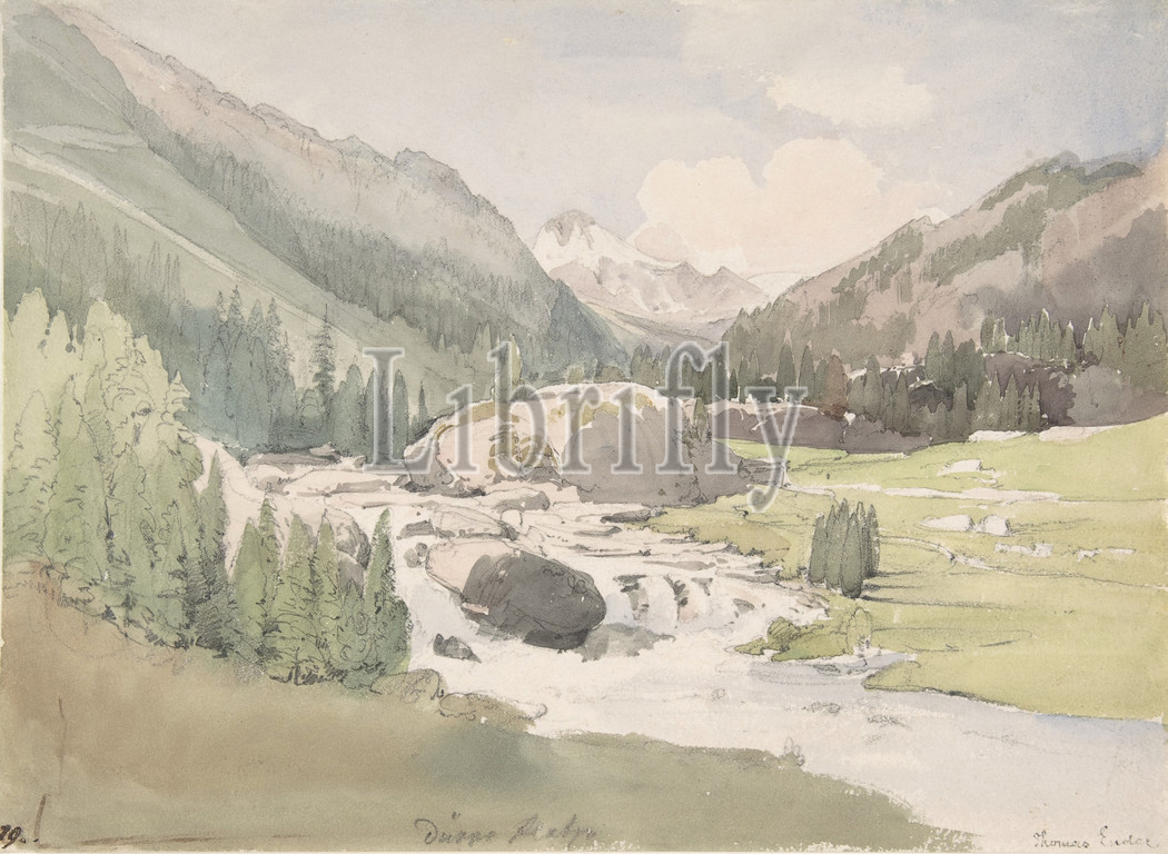 Mountain Valley, early 19th–mid 19th century, Watercolor over graphite, 8 1/4 x 11 1/4 in. (21 x 28.5 cm), Drawings, Thomas Ender (Austrian, Vienna 1793–1875 Vienna)