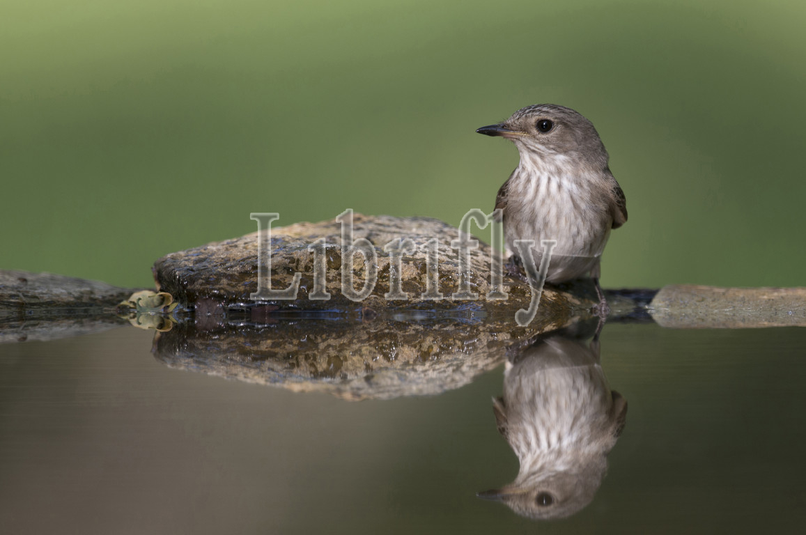 Muscicapa striata, Spotted Flycatcher near water