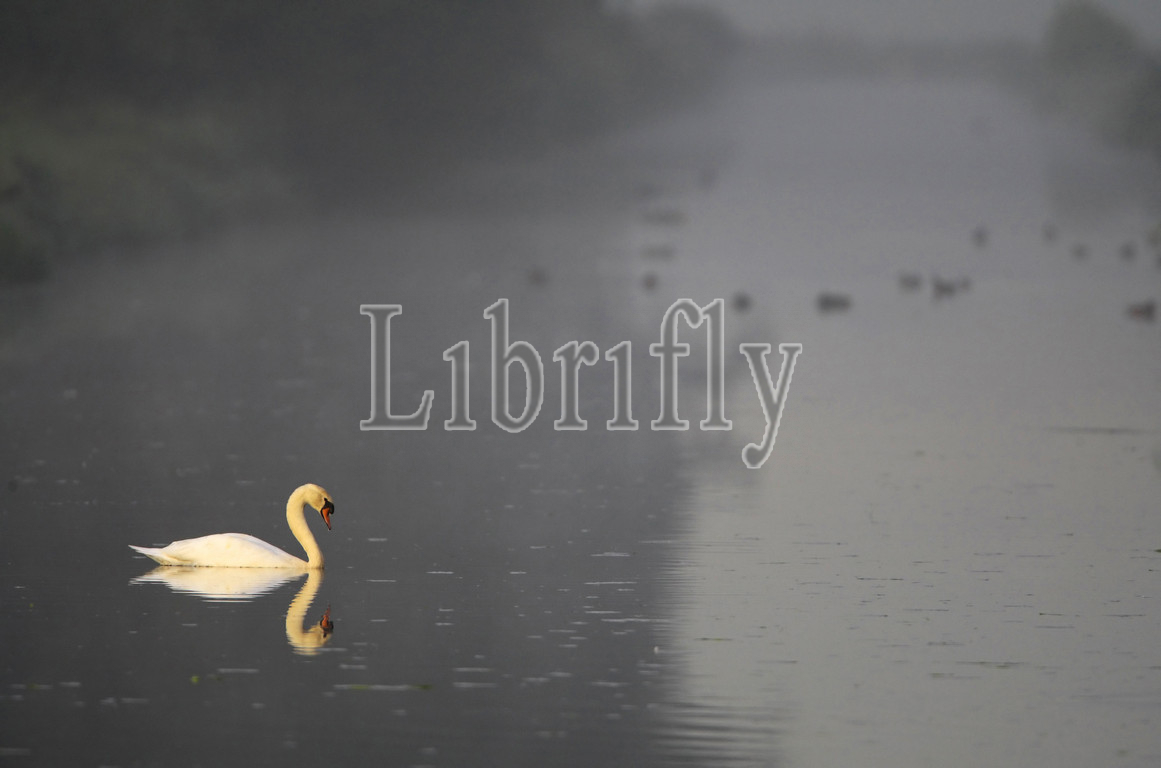 Mute Swan adult swimming in ditch Netherlands, Cygnus olor