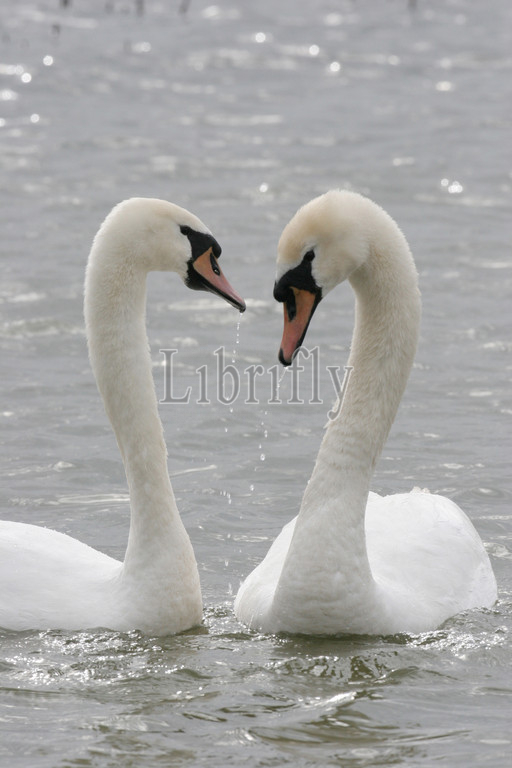 Mute Swan pair in courtship, Cygnus olor